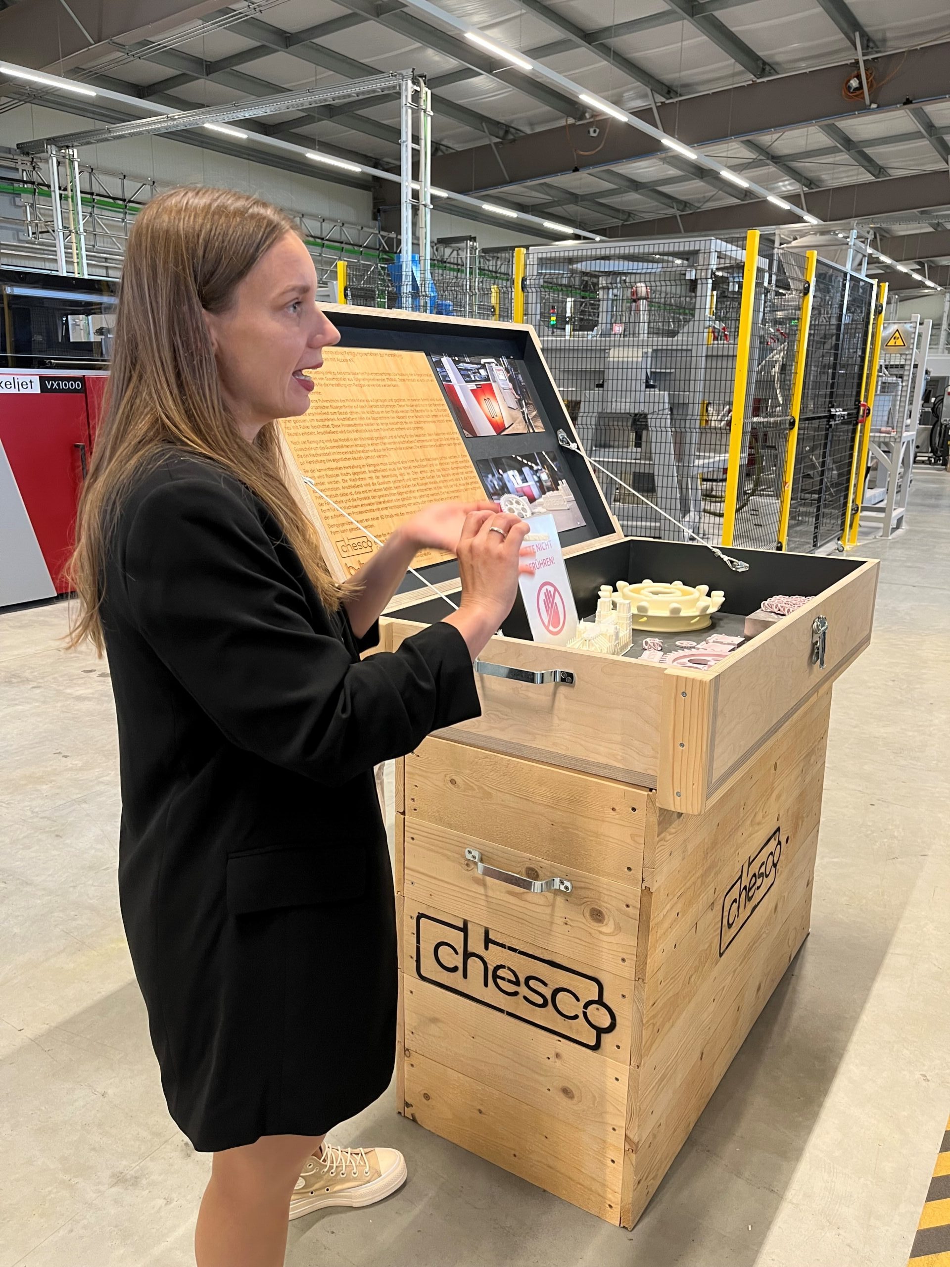 Der Nachmittag begann mit einer Begrüßung und einem Impuls zur chesco-Forschung im Bereich alternativer Antriebssysteme. Anschließend erhielten die Teilnehmerinnen bei einer Hallenführung praxisnahe Einblicke in innovative Fertigungstechnologien. Zwei Mitarbeiterinnen – eine vom chesco und eine vom Lausitz Science Park – berichteten zudem aus erster Hand über ihre Erfahrungen und Visionen.