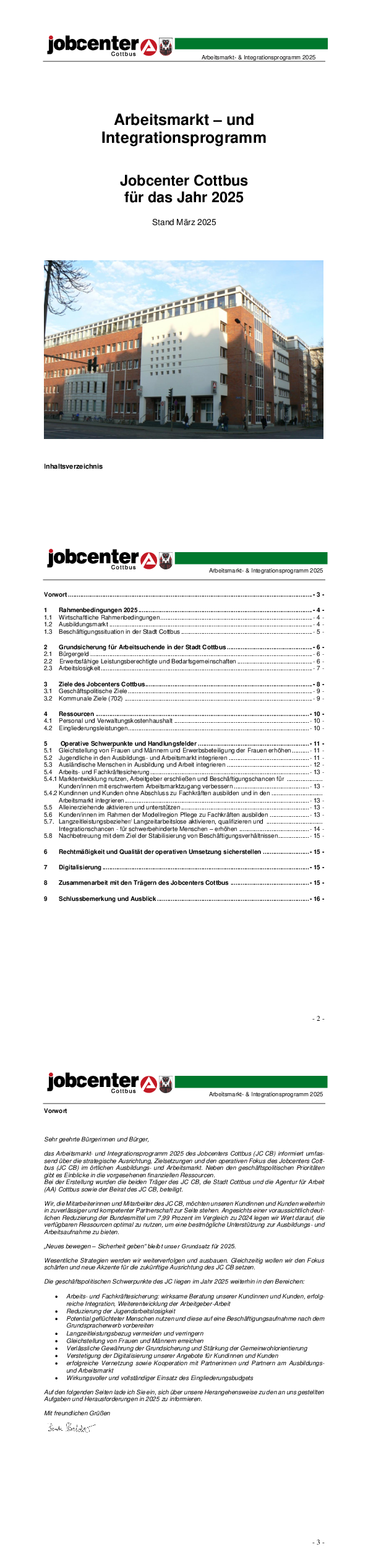 Arbeitsmarkt- und Integrationsprogramm Jobcenter Cottbus für das Jahr 2025