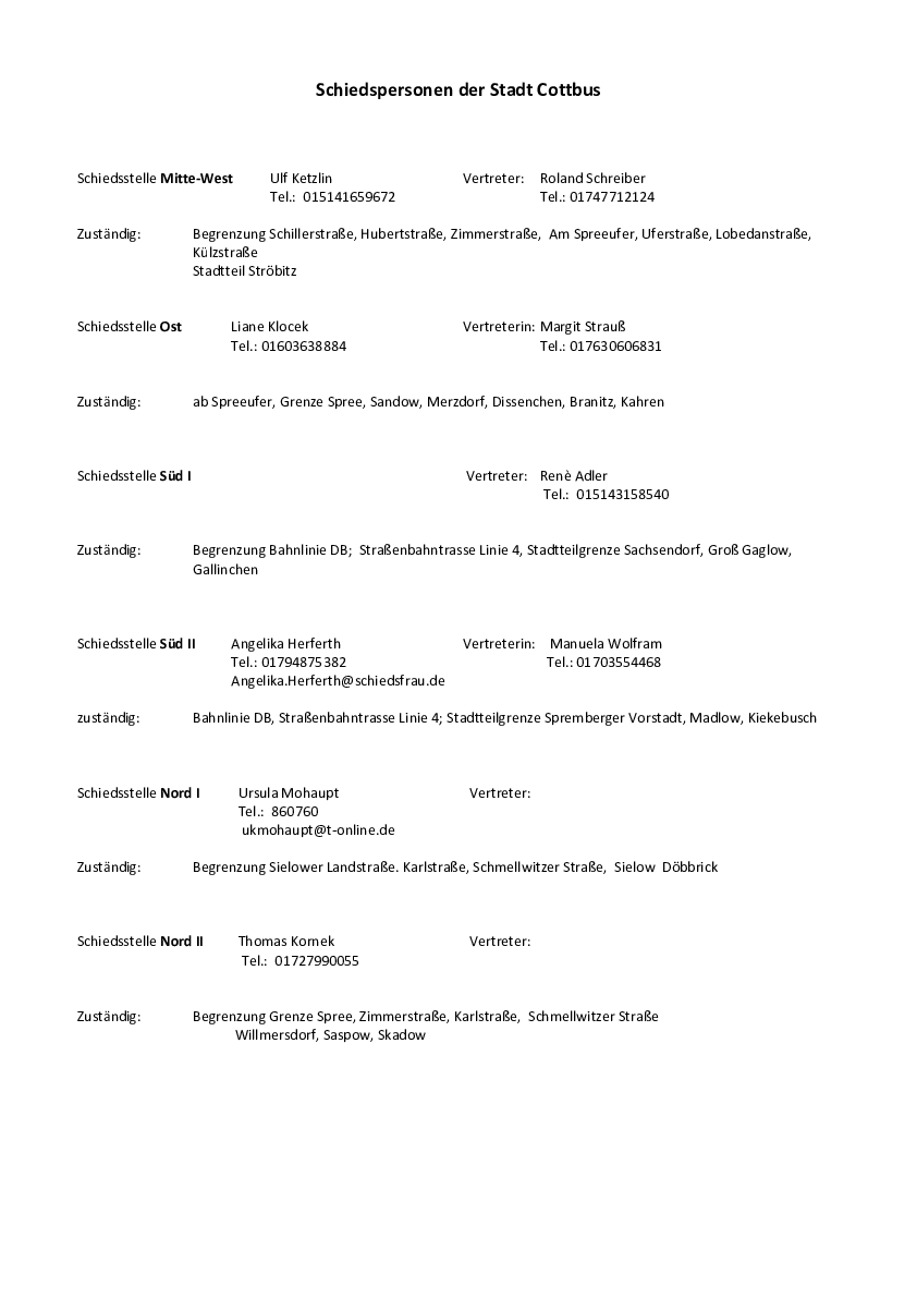 Der Zuständigkeitsbereich der Schiedsstellen ist unter www.cottbus.de/schiedsstellen einzusehen.