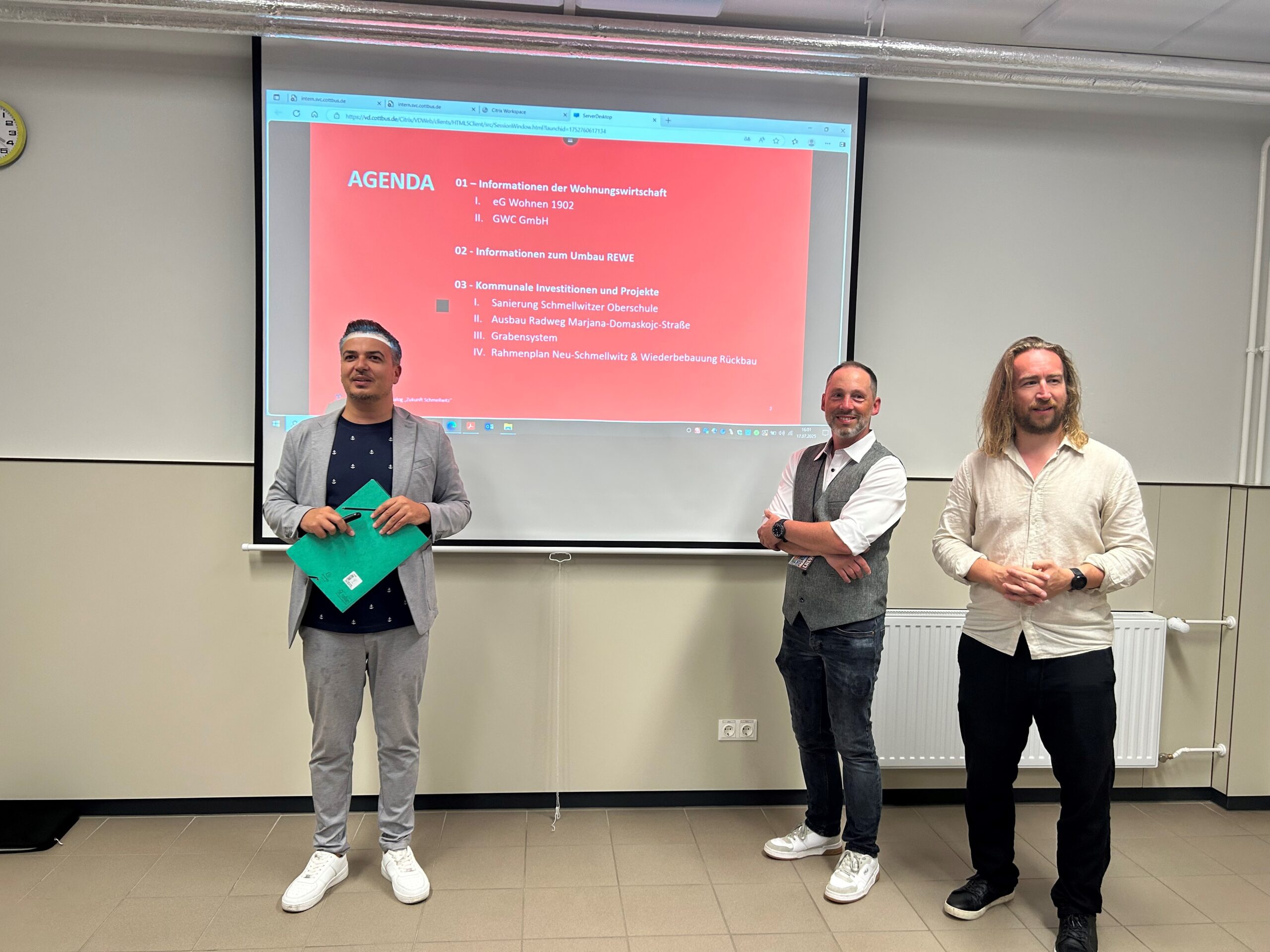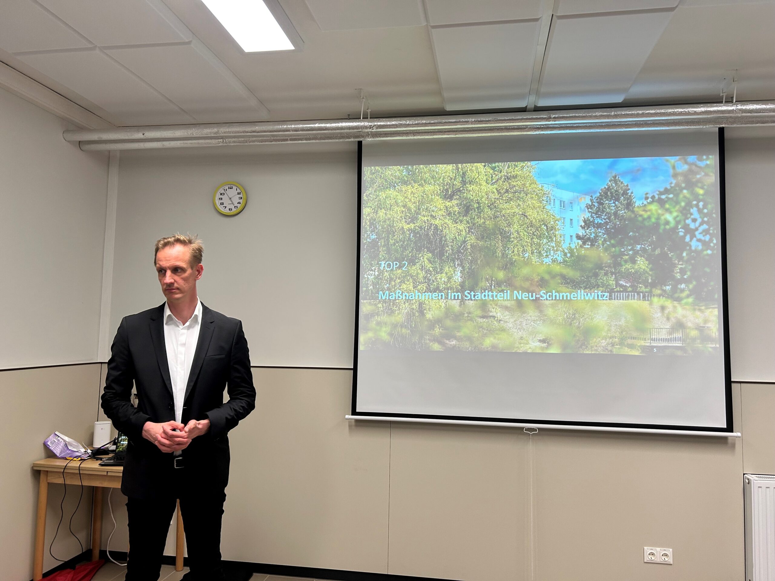 Ein weiteres Thema war die Umgestaltung des REWE-Standorts, die bis 2028 abgeschlossen sein soll. Auch die kommunale Sanierung der Schmellwitzer Oberschule bis 2030 wurde vorgestellt – eine Investition in Bildung und Zukunft des Stadtteils.