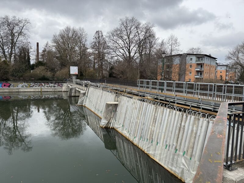 Das Landesumweltamt favorisiert hingegen bislang den Bau der Fischaufstiegsanlage auf der linken Spreeseite. Somit würde es zu einem erheblichen Eingriff in den Denkmalbereich um den Frühlingsgarten am Mühlgraben kommen. Die Flächen befinden sich aktuell im Eigentum der Stadt Cottbus/Chóśebuz.
