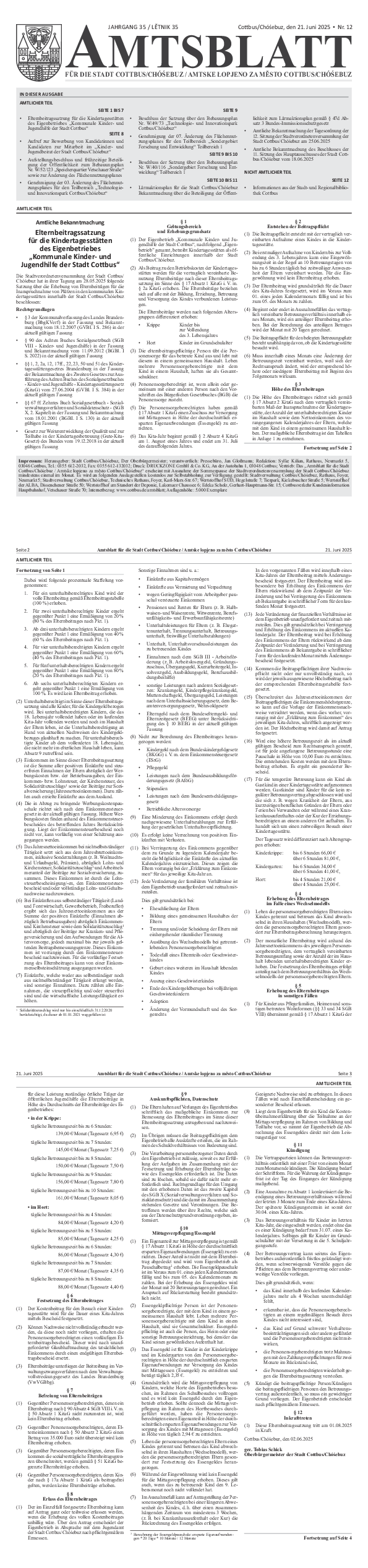- Amtliche Bekanntmachung der Tagesordnung der 12. Sitzung der Stadtverordnetenversammlung der Stadt Cottbus/Chóśebuz am 25.06.2025