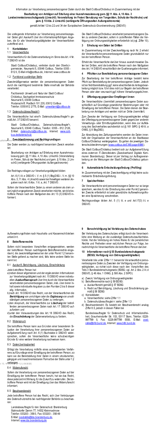 Information zur Verarbeitung personenbezogener Daten durch die Stadt Cottbus/Chóśebuz im Zusammenhang mit der