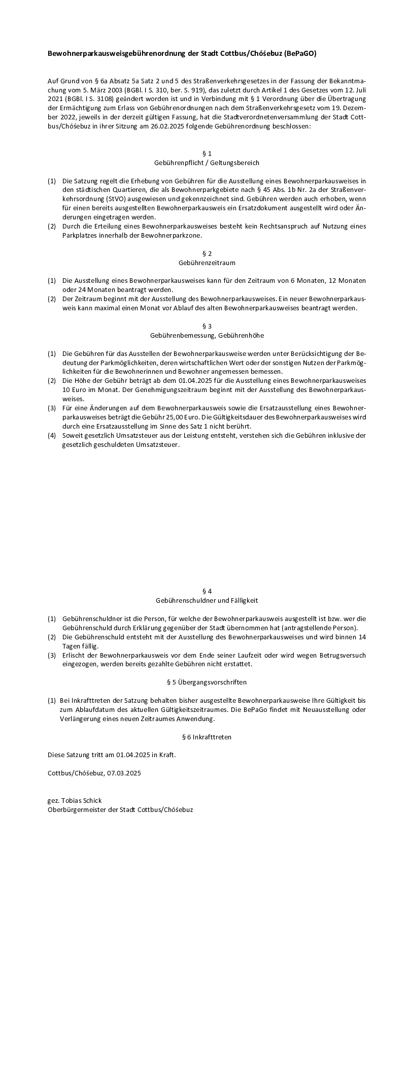 Bewohnerparkausweisgebührenordnung 2025