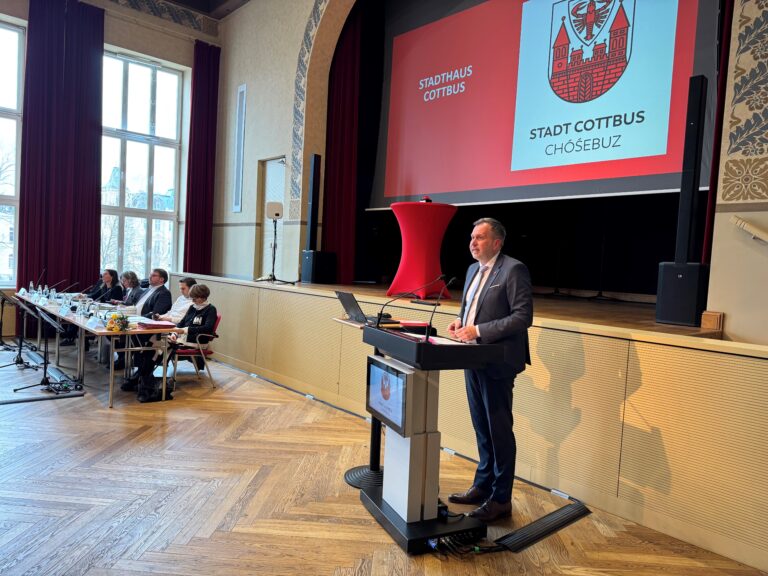 Sehr geehrter Herr Vorsitzender, sehr geehrte Damen und Herren Stadtverordnete, liebe Cottbuserinnen und Cottbuser, zur ersten Stadtverordnetenversammlung im neuen Jahr zunächst Ihnen alles Gute, beste Gesundheit und ein spannendes Jahr in ehrenamtlicher kommunaler Verantwortung – auch wenn es für die eine oder den anderen sicher nur noch ein halbes Jahr sein wird.