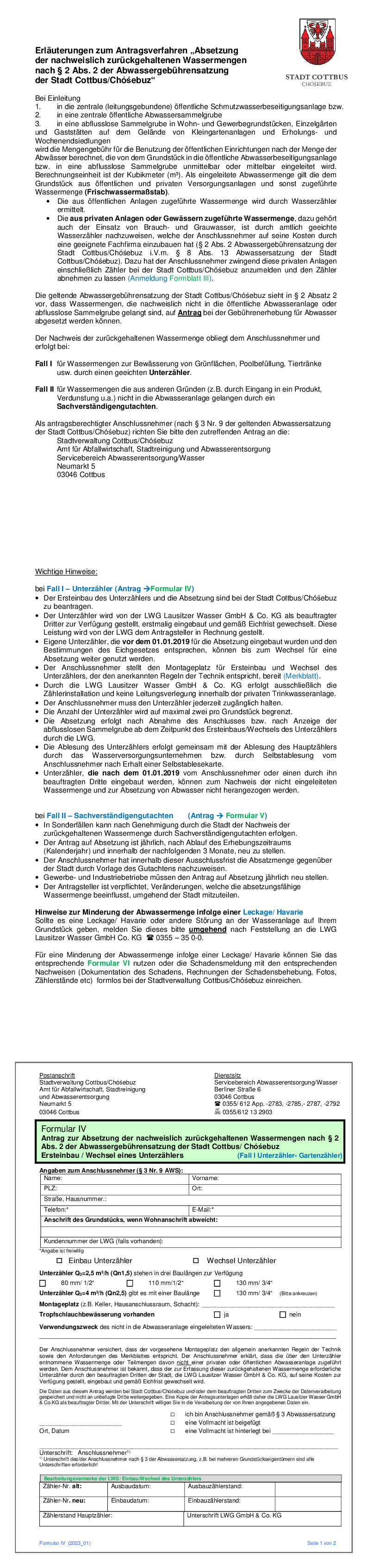 Formular IV, V, VI Erläuterungen Absetzung und GZ Stadt Cottbus