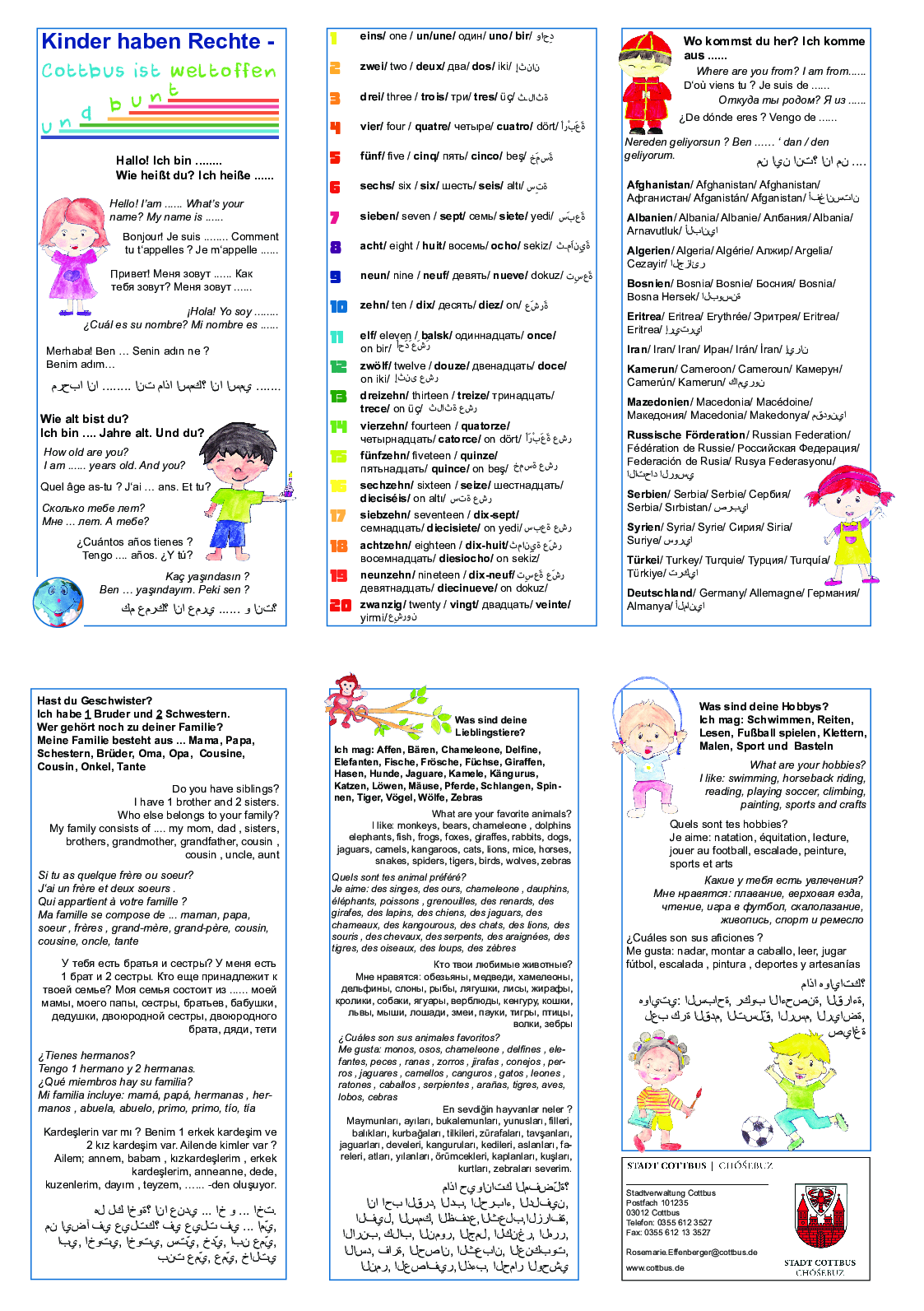 Die Stadt Cottbus stellt einen sechsprachiger Flyer speziell für Kinder und Jugendliche zur Verfügung, der helfen soll, erste Sprachbarrieren zu überwinden.