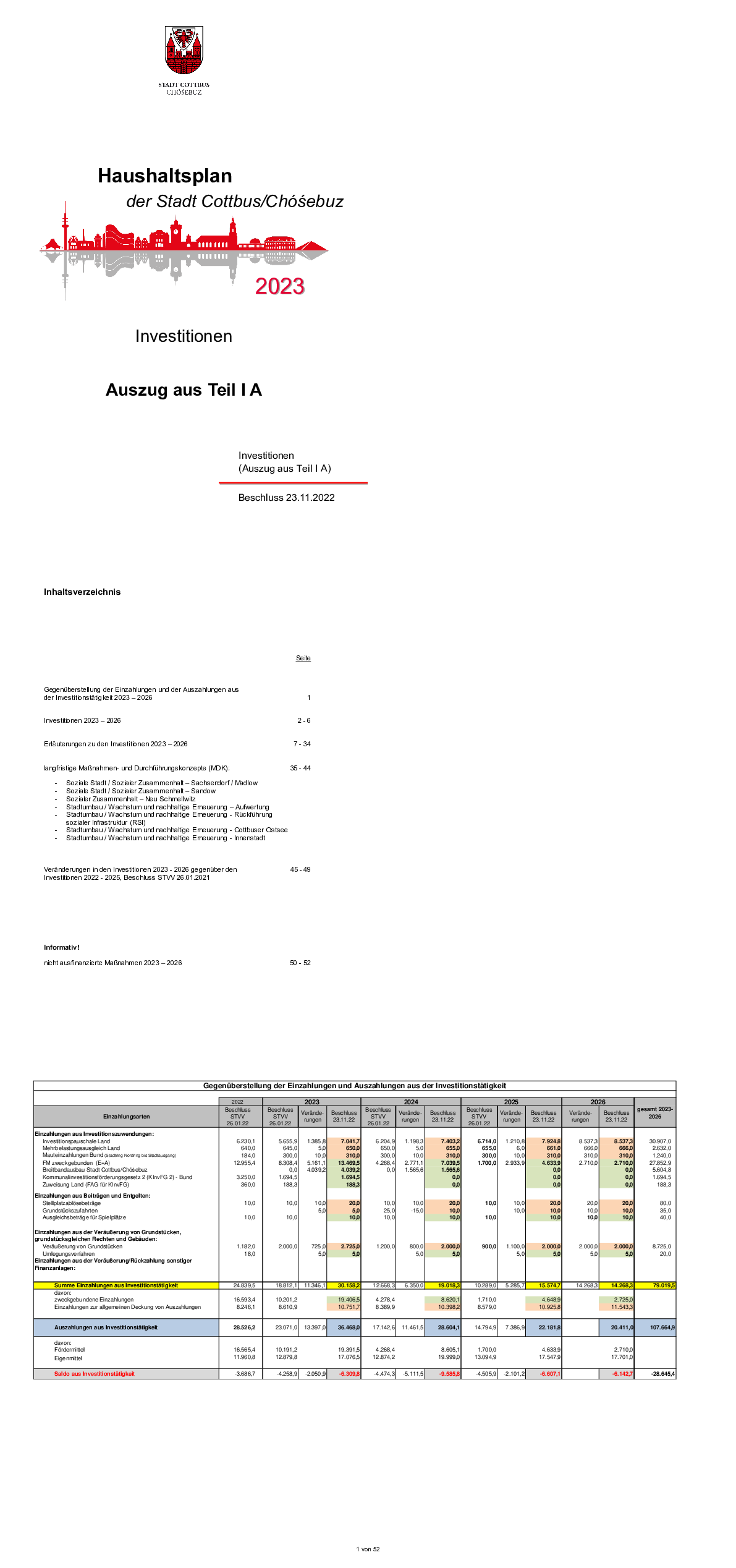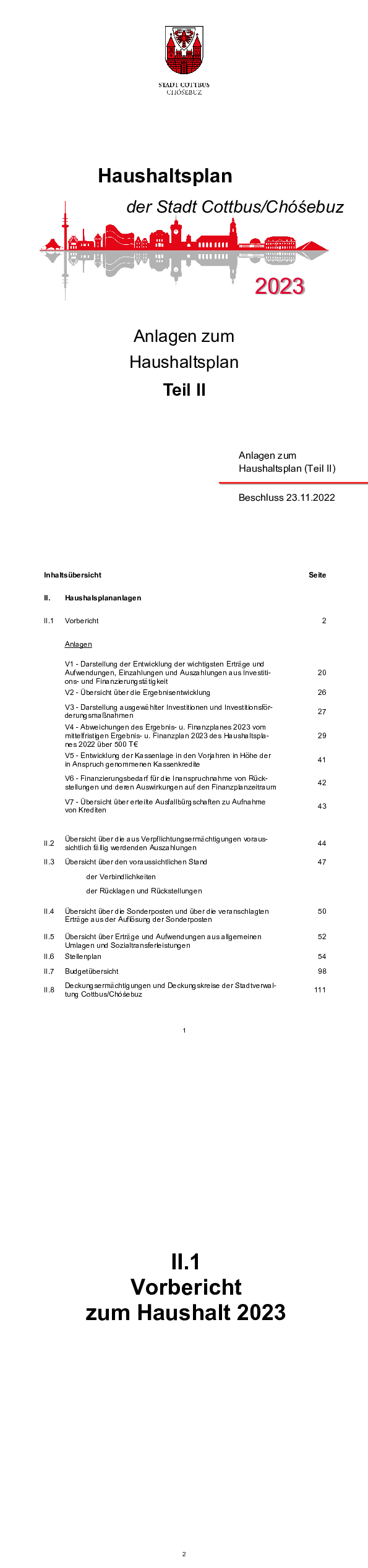 Haushaltsplan und Haushaltssatzung der Stadt Cottbus Chóśebuz für das Jahr 2023, Teil IA