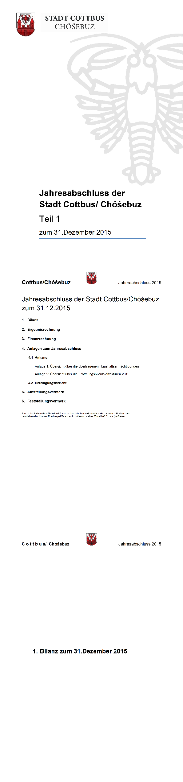 „Beschluss über den Jahresabschluss 2015“ der Stadtverordnetenversammlung Cottbus vom 26.02.2020