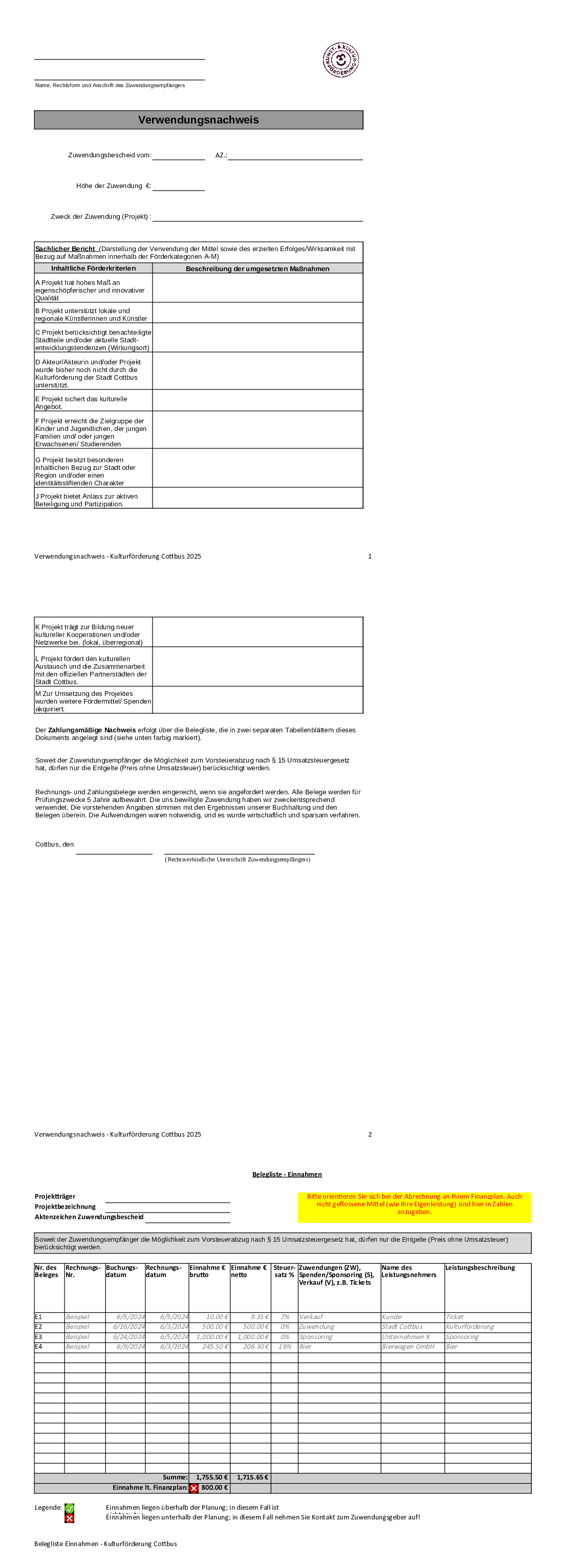 Die folgenden Dokumente sind für Öffentlichkeitsarbeit und Fördermittel-Abrechnung ab 2025 notwendig:
