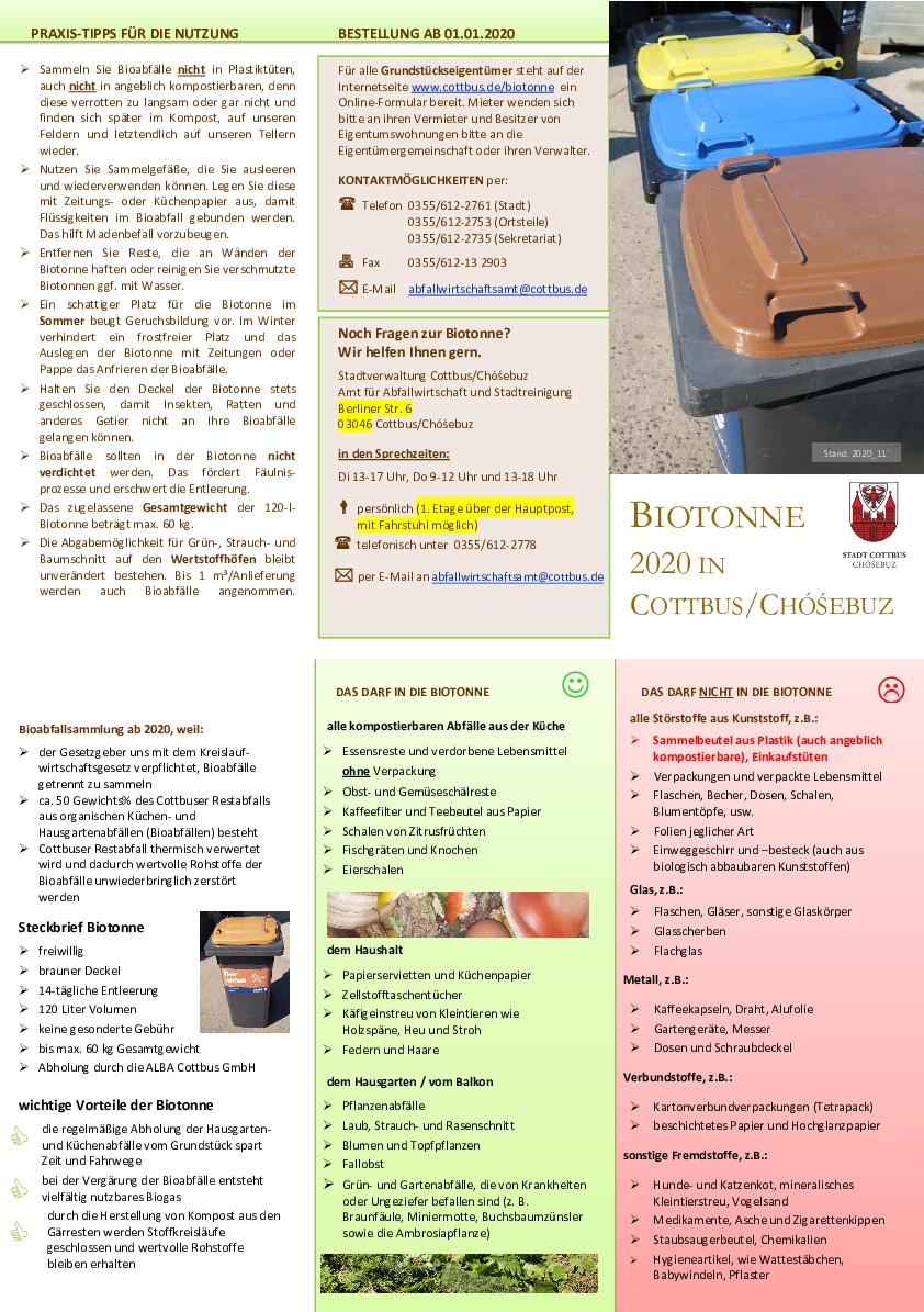 Ausdruckformular für die Anmeldung der Biotonne und Flyer