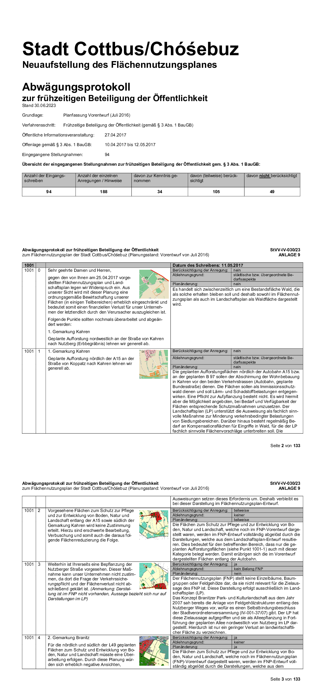 In Cottbus/Chóśebuz ist das förmliche Verfahren zur Neuaufstellung des FNP mit dem Aufstellungsbeschluss (Beschluss-Nr. IV-068-23/10) am 24.11.2010 gemäß § 2 Abs. 1 BauGB eingeleitet worden. Das Erfordernis der Neuaufstellung des FNP war u.a. aus folgenden Gründen gegeben: