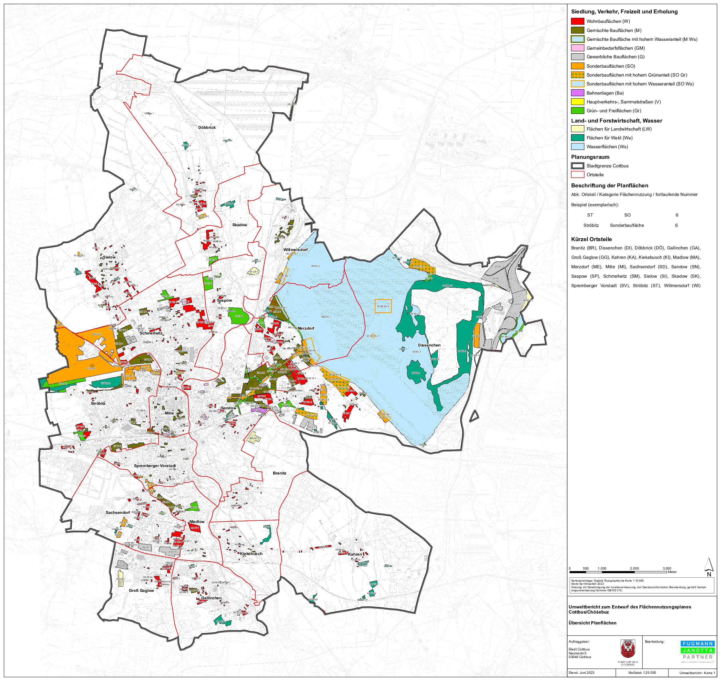 Für das ehemalige Stadtgebiet Cottbus/Chóśebuz sowie für die ehemaligen Gemeinden Groß Gaglow und Gallinchen bestehen eigenständige rechtswirksame Flächennutzungspläne, die nach § 204 Abs. 2 fortgelten. Für den Bereich der ehemaligen Gemeinde Kiekebusch dagegen fehlt bislang ein Flächennutzungsplan. Die bestehenden Flächennutzungspläne sind entsprechend zusammen zu führen, fehlende Bereiche zu ergänzen. Aufgrund der Vergrößerung des Stadtgebietes sowie aus Gründen veränderter städtebaulicher Rahmenbedingungen müssen die Zielvorstellungen an die künftig zu erwartende, städtebauliche Entwicklung in den Teilbereichen ganzheitlich angepasst werden. Vor dem Hintergrund der demografischen Veränderungen und des Stadtumbauprozesses sowie der angestrebten wirtschaftlichen, ökologischen, sozialen und kulturellen Entwicklung sind Auswirkungen im FNP darzustellen.