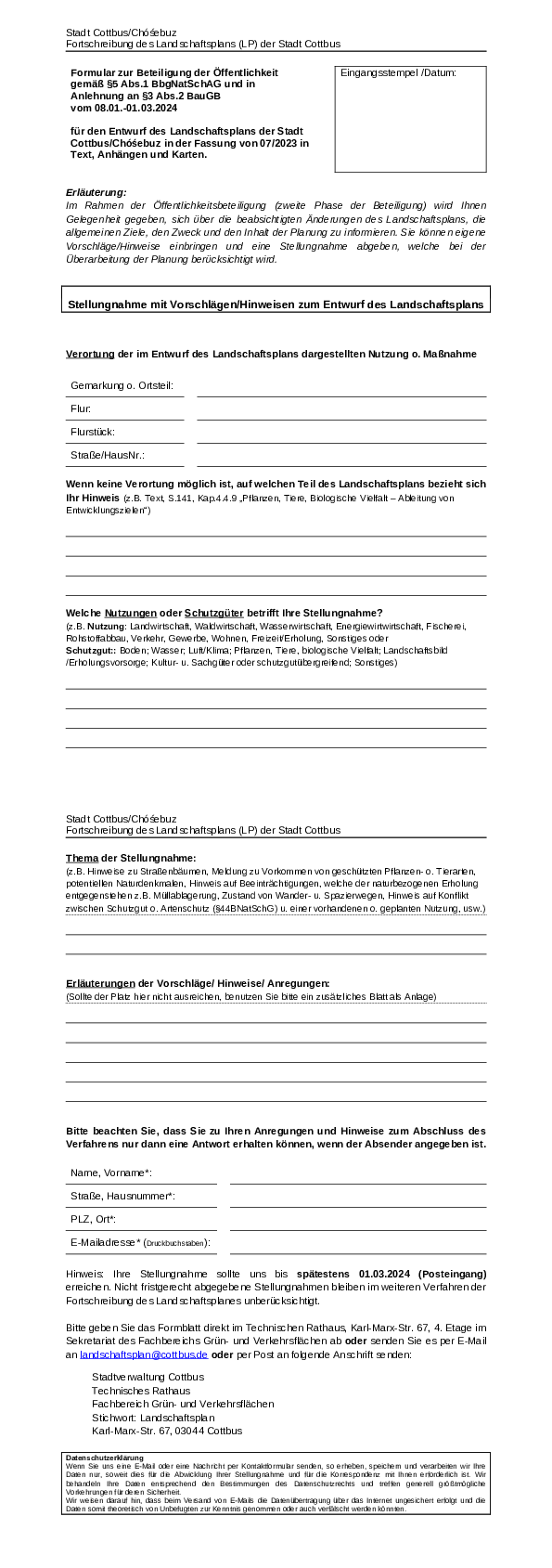 Beteiligung der Öffentlichkeit zum Entwurf des Landschaftsplanes der Stadt Cottbus/Chóśebuz