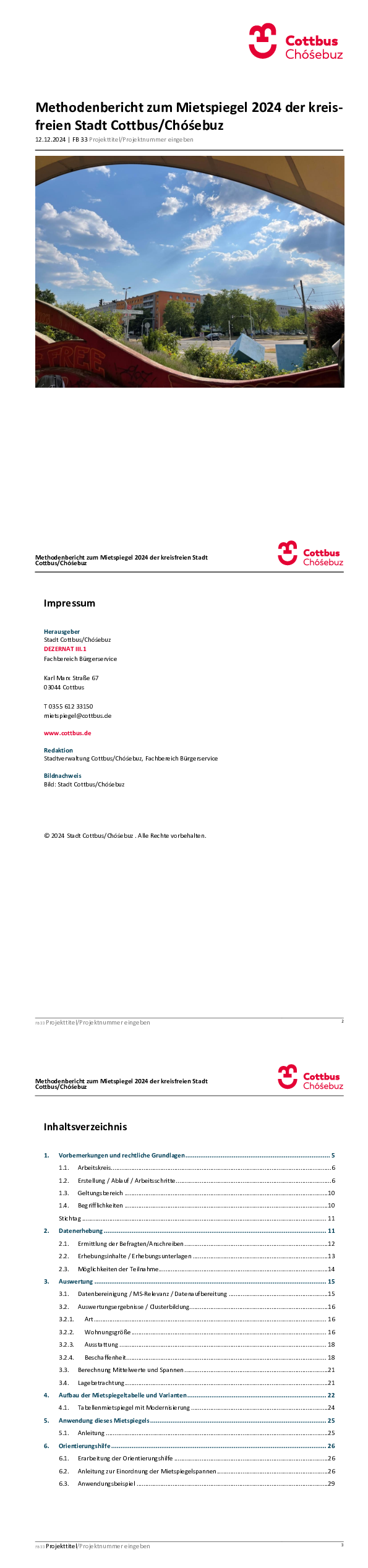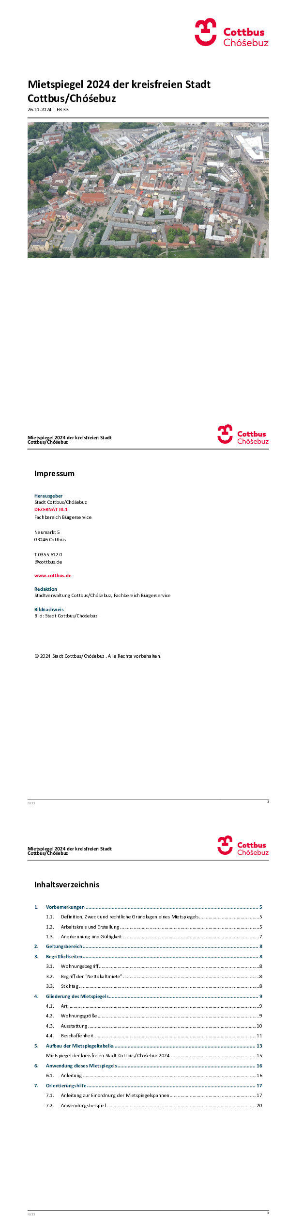 Mietspiegel 2024 der kreisfreien Stadt Cottbus/Chóśebuz