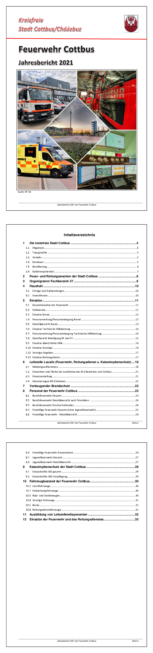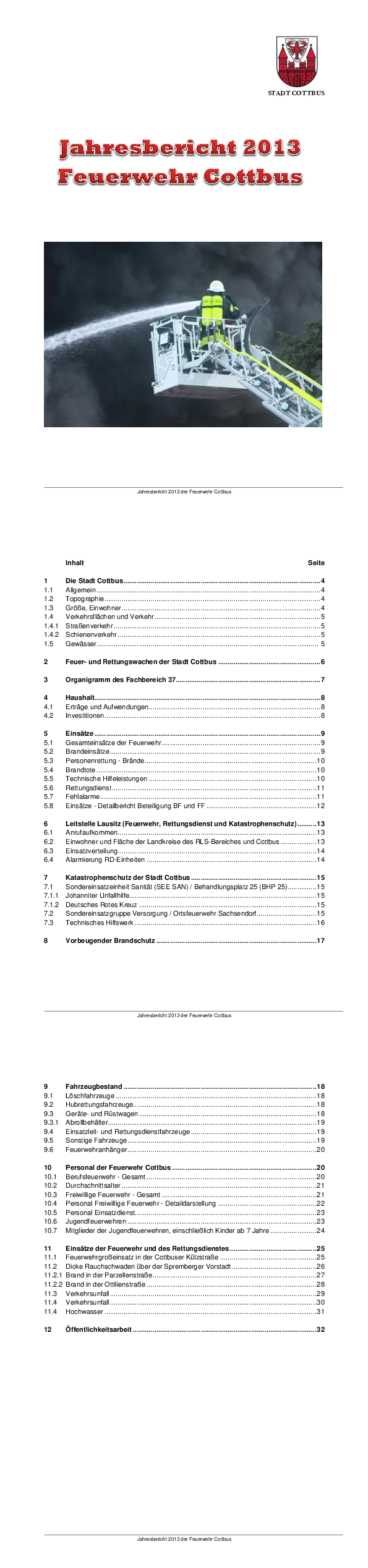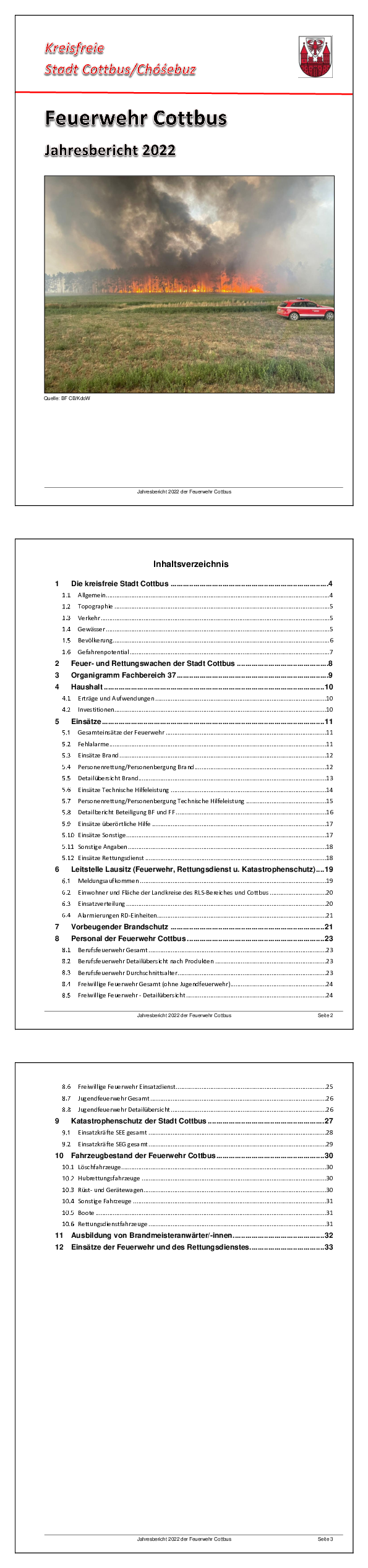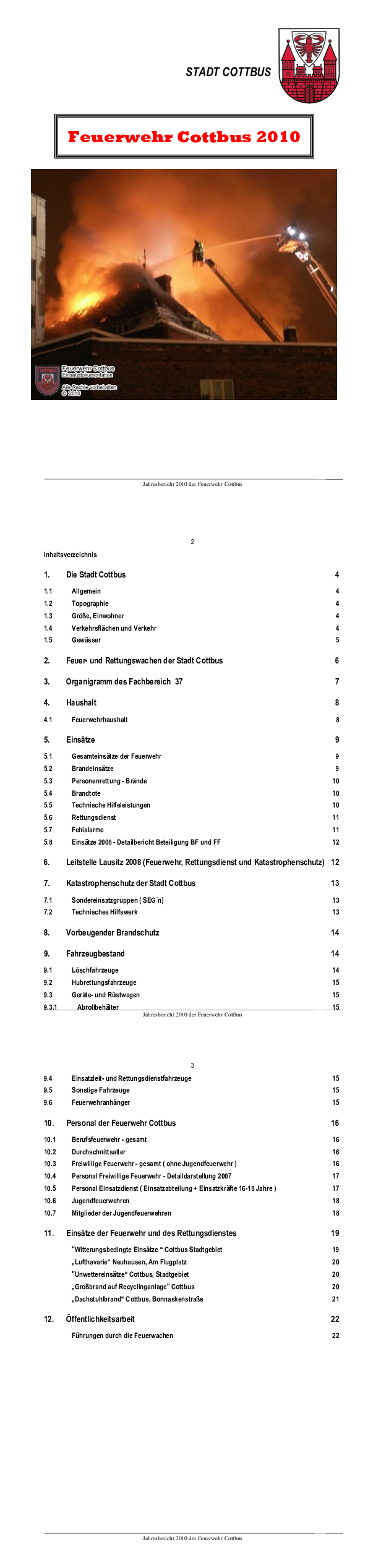 Wir stellen Ihnen hier aktuelle Dokumente zum Download zur Verfügung, die Sie über die Arbeit der Berufs- und der freiwilligen Feuerwehren Cottbus informieren:
