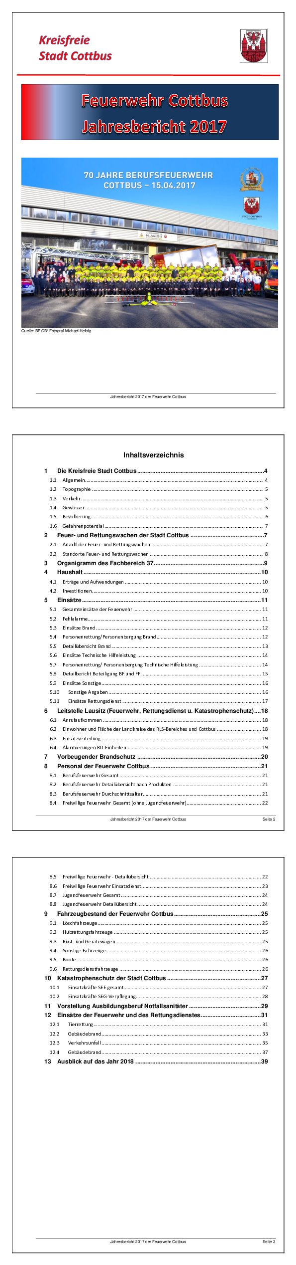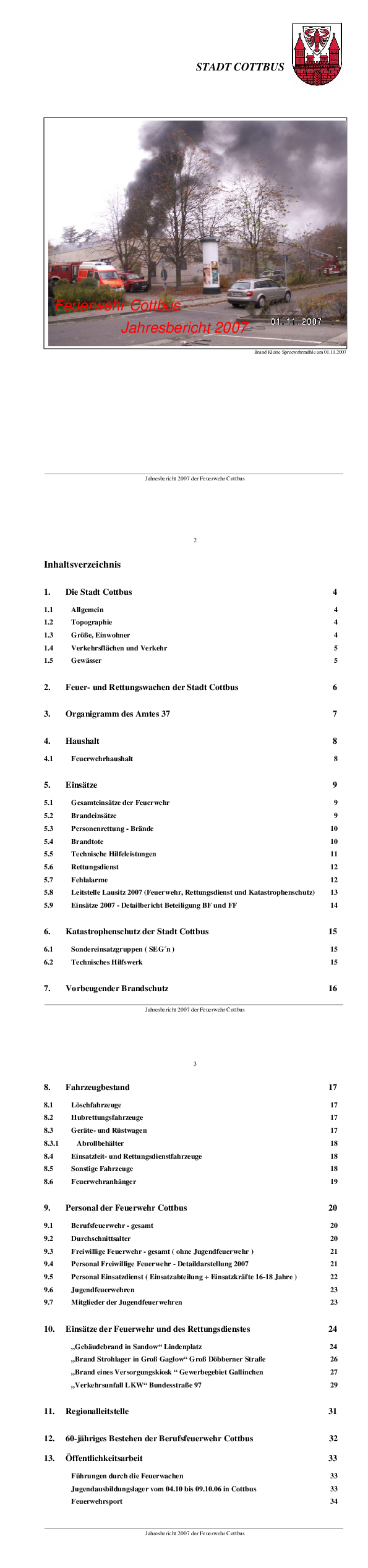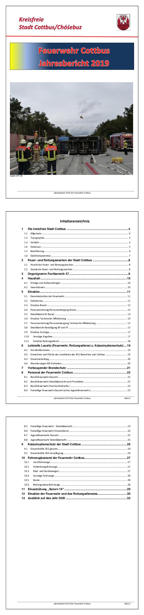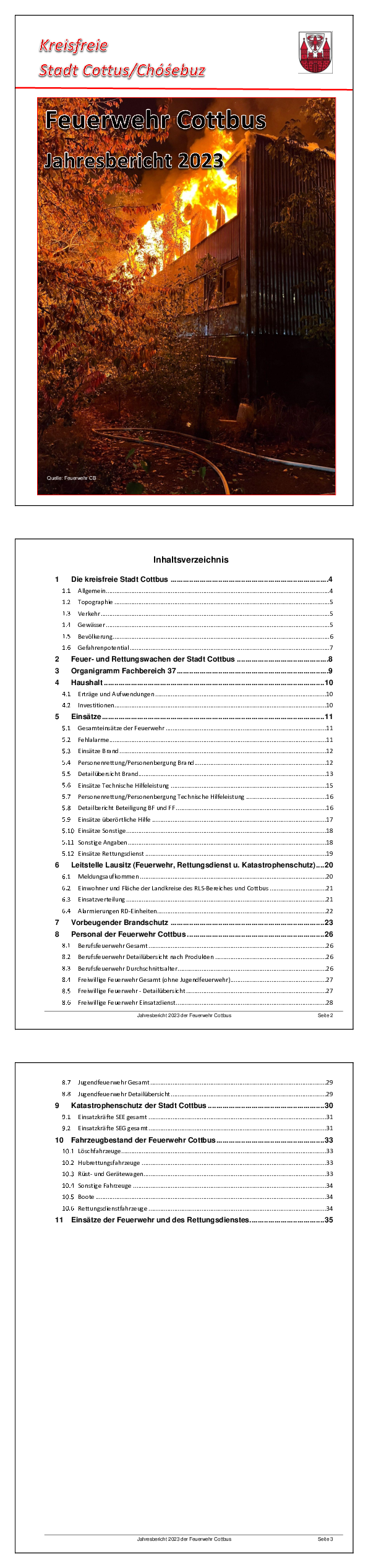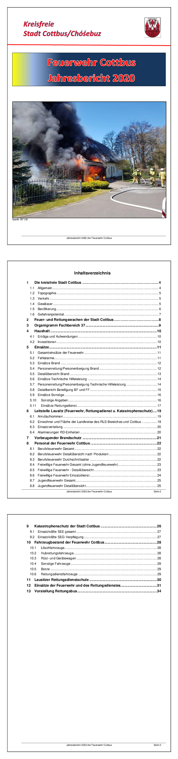 Wir stellen Ihnen hier aktuelle Dokumente zum Download zur Verfügung, die Sie über die Arbeit der Berufs- und der freiwilligen Feuerwehren Cottbus informieren: