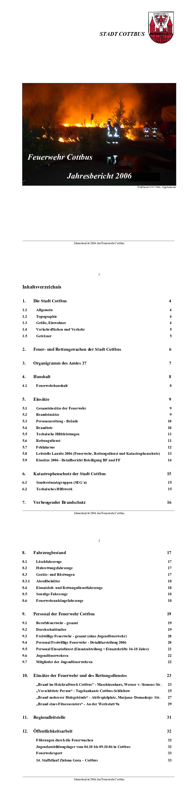 Jahresbericht der Feuerwehr 2006