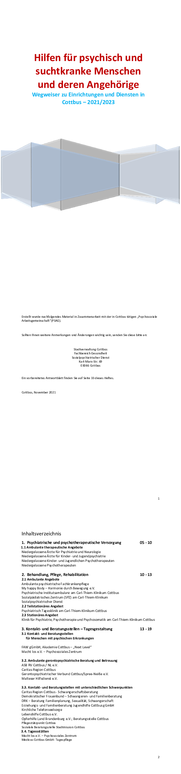Wegweiser zu Einrichtungen und Diensten für psychisch und suchtkranke Menschen und deren Angehörige 2021 - 2023