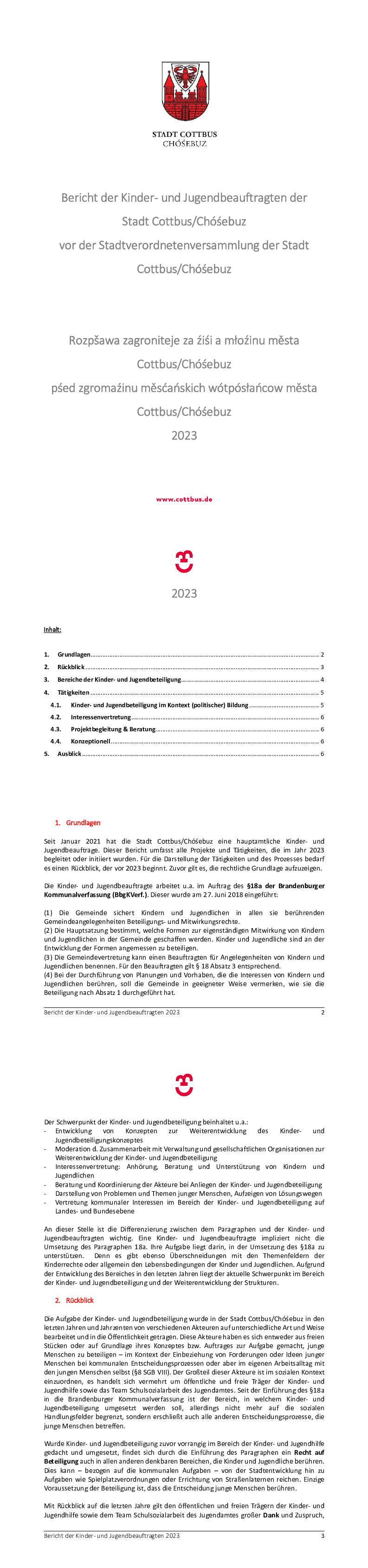 Tätigkeitsbericht der Kinder und Jugendbeauftragten 2024