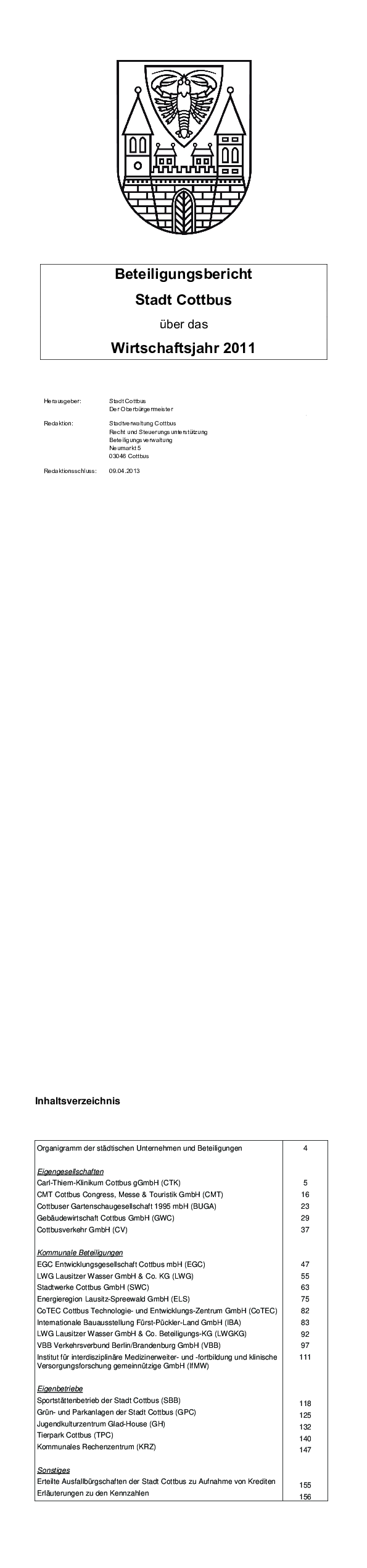 Folgende Beteiligungsberichte sind abrufbar. Die Möglichkeit der Einsichtnahme ist zudem im Neumarkt 5, Zimmer 224 gegeben.